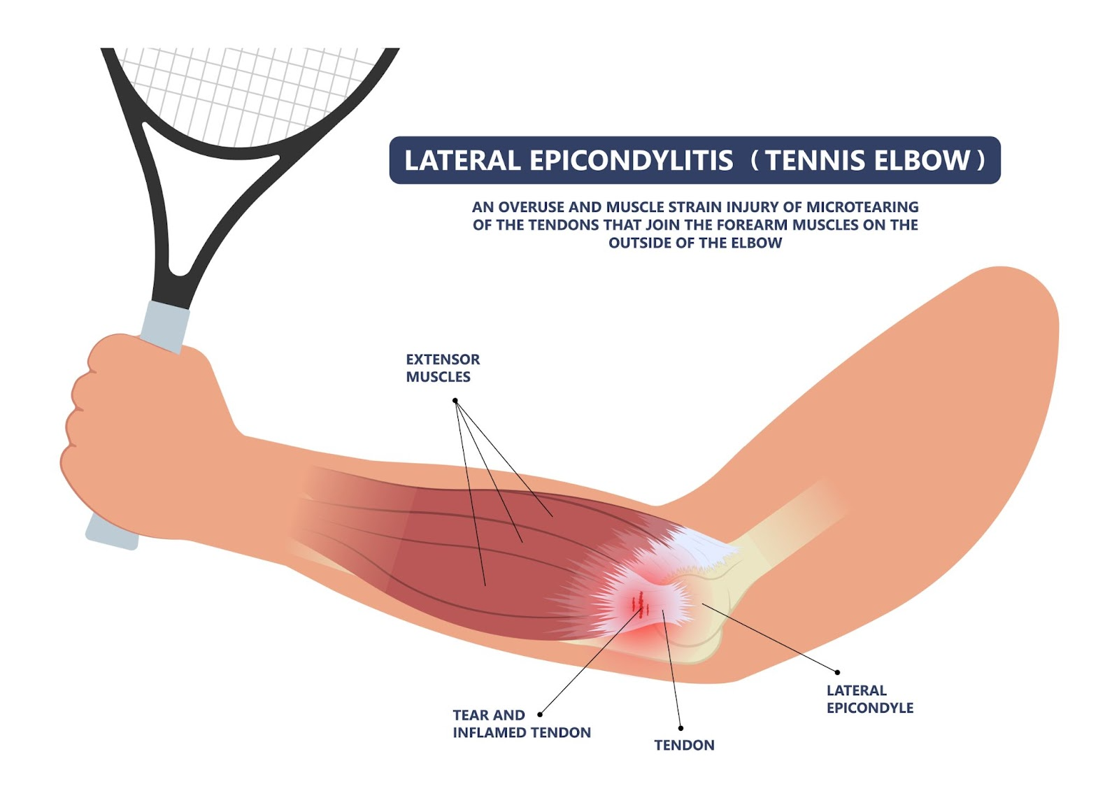 Contrary to its name, “tennis elbow” is not limited to only people with strong serves. The medical diagnosis for the colloquial “tennis elbow” is elbow tendonitis, which occurs when the tendons in one’s elbows have been taxed by repetitive motions in the arms and wrists.